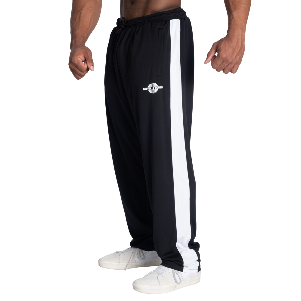 Features: Zippered pockets, elastic waistband with drawstring, BB logo below left front pocket